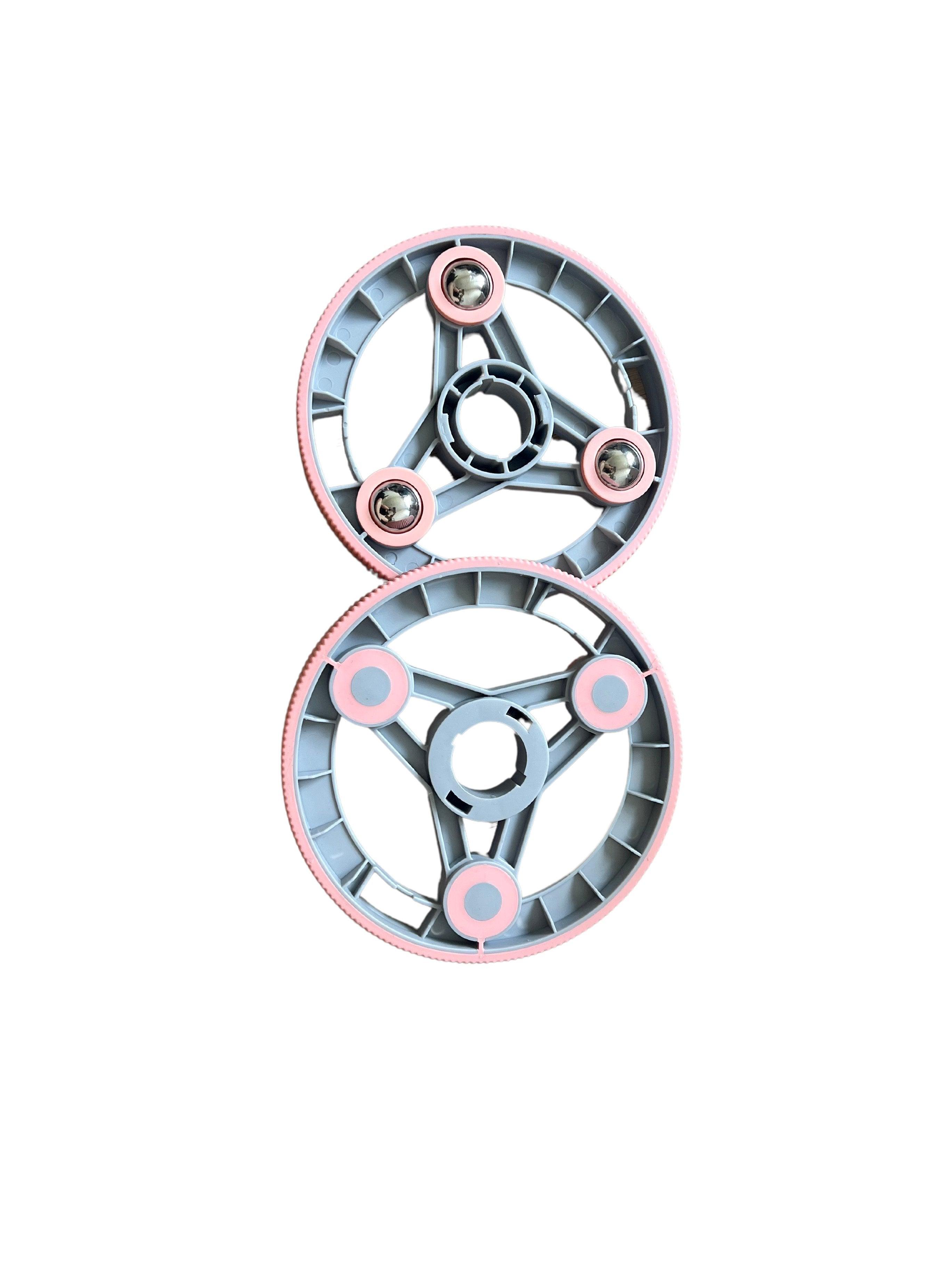 The two wheels also have three round balls on one side that they can roll on, so they can be used as a set of sliders.
