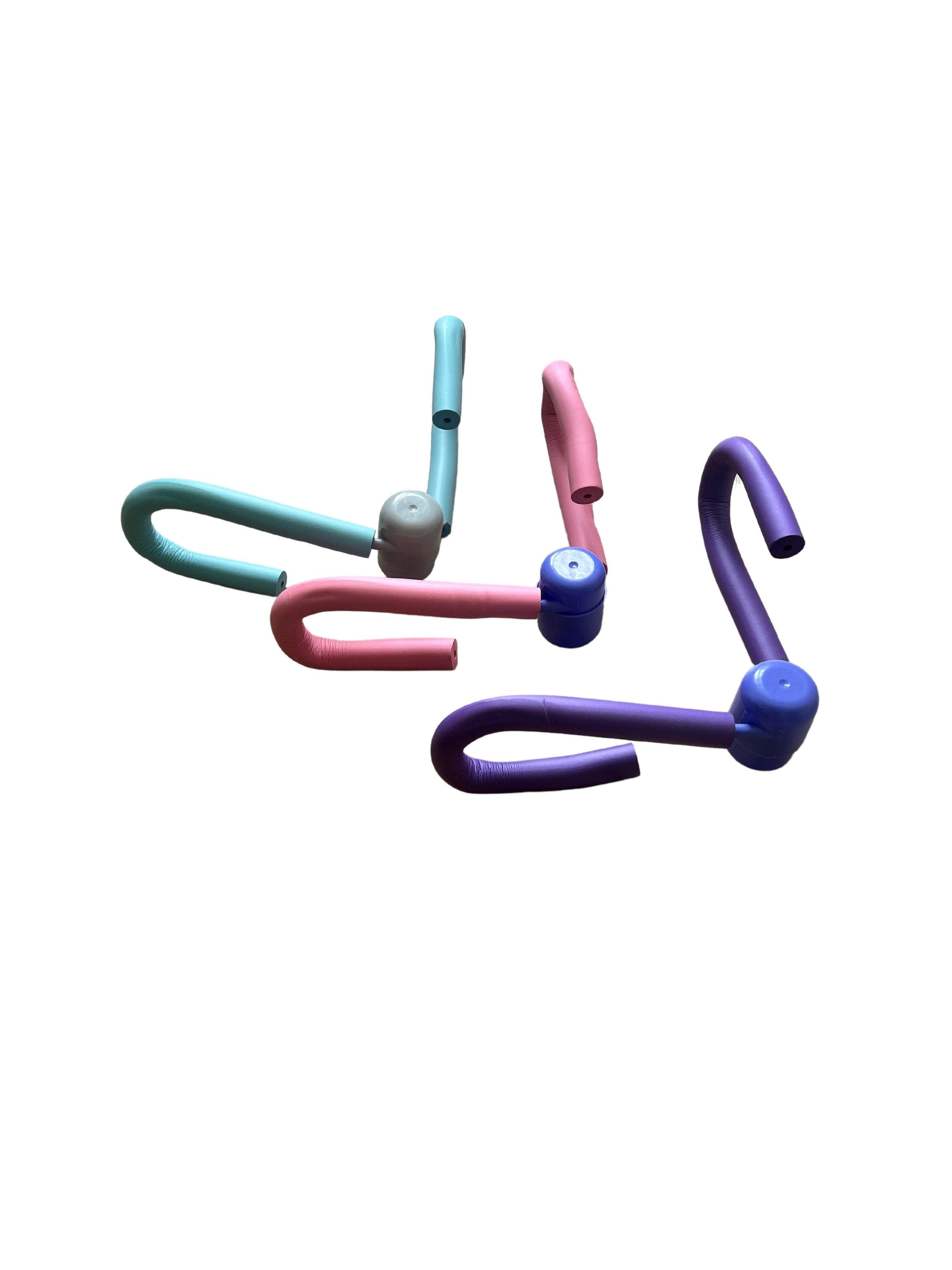 The trainer consists of a metal spring shielded by a plastic sheath. The arms have a soft foam cover for comfortable use.