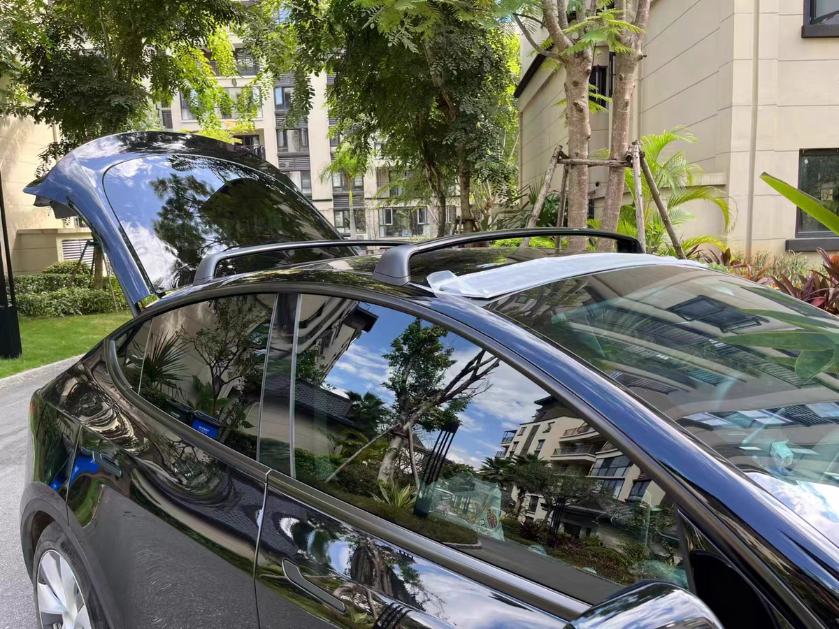 This roof rack kit is specifically designed for the Tesla Model Y and can be easily mounted to the roof without any adjustment. The roof racks can carry roof boxes, bike racks, skis, and many other items.